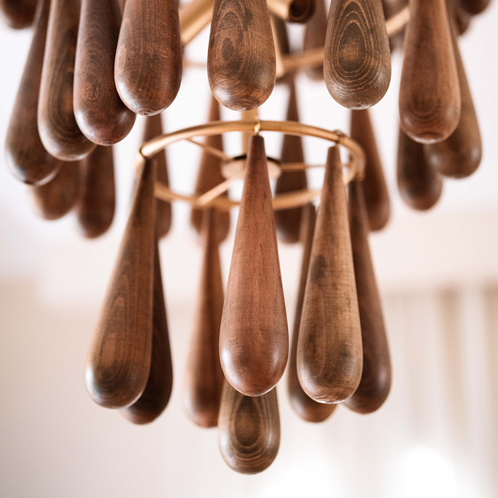 Adele Wooden drops chandelier made of 3 tier round, features hanging wooden drops, draws the eye with its exquisite beauty.