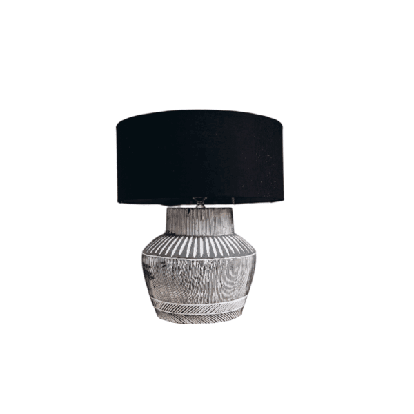 Aira’s striking design is characterized by its hand-painted black lamp shade, white, and grey striped shades, which create a mesmerizing interplay of light and shadows. These carefully applied brushstrokes imbue the lamp with a sense of dynamic movement, capturing the essence of modern elegance.