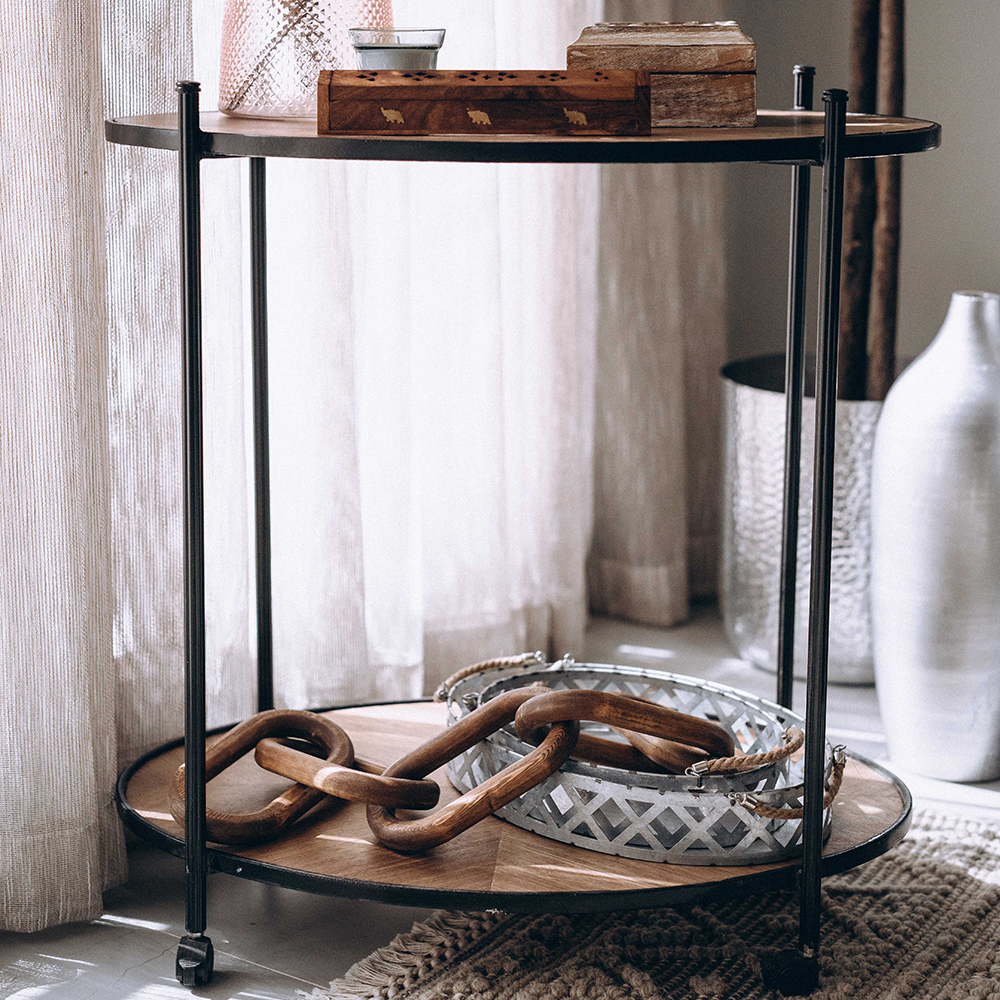 • Whether you use it as a coffee table, a side table, or a table cart for serving snacks and drinks. It is easy to move and use this sturdy metal constructed serving cart featuring industrial style, and the wooden shelves