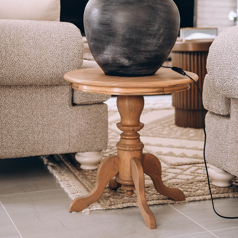 Made of Beech Wood, this round side table is set on three legs, it give a glamorous French country style. With a characteristic wood grain finish, it balances your home style with a delicate touch.