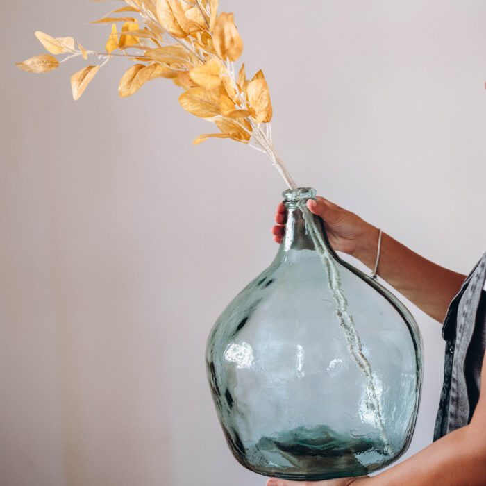 “AZURE” Clear Baby Blue Glass Vase, a stunning piece that effortlessly combines elegance and tranquility. Here is a detailed description of this exquisite vase: