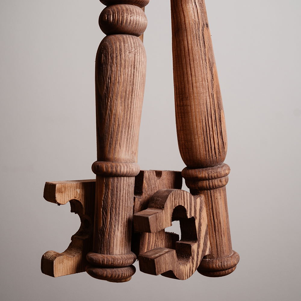 DesignThis key features a classic skeleton key design with intricate carvings on the handle and shaft. The pine wood’s natural grain adds a warm and organic texture to the overall look. The key has an antique finish, giving it an aged appearance, as if it has been passed down through generations.