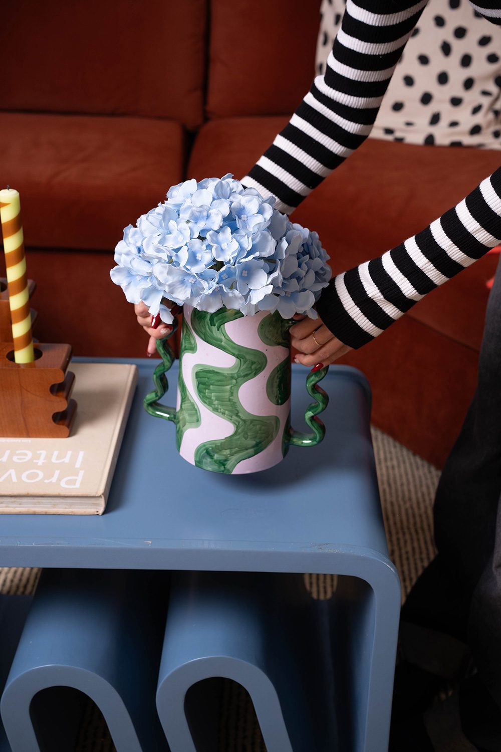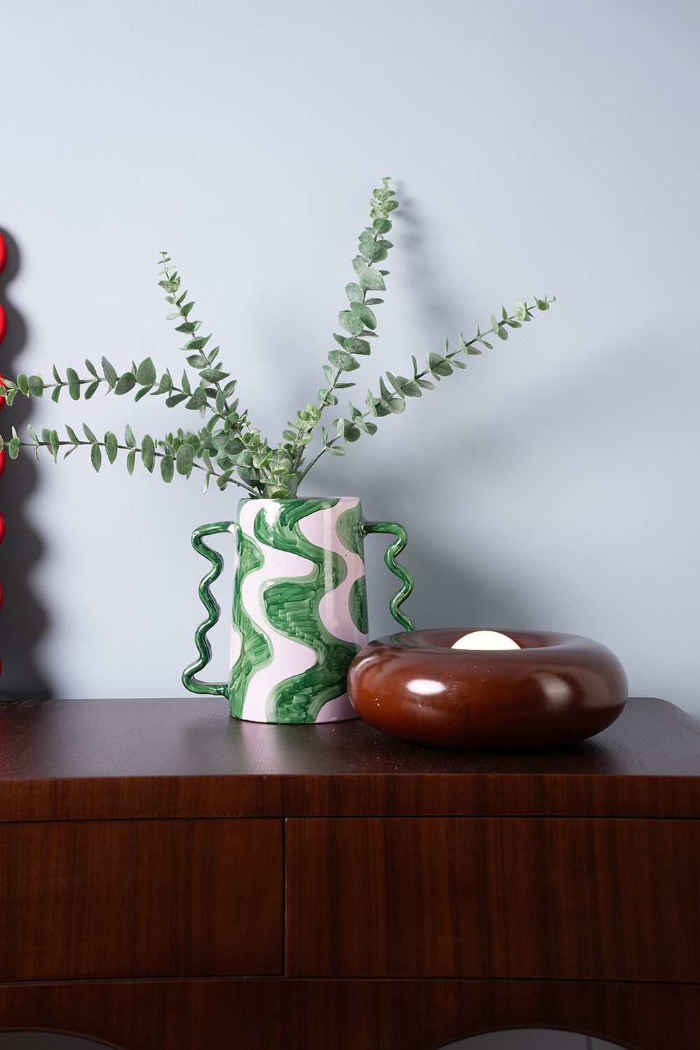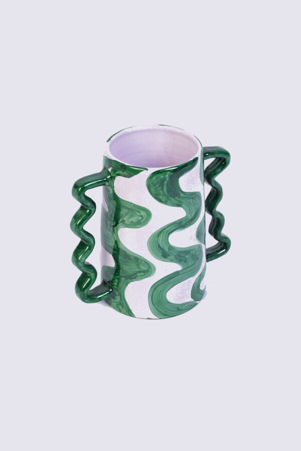 The Doodle handmade ceramic vase with fluid green strokes and sculptural handles that add movement and character. Its bold, artistic form makes it perfect for styling flowers or standing alone as a statement decor piece.