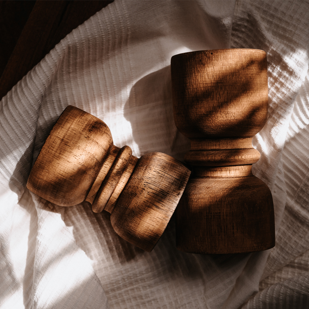 Take your table setting or living room ambience to a new level with our “Gigil” candleholders set. Crafted from Beech wood, rustic and yet a perfect addition to any home decor