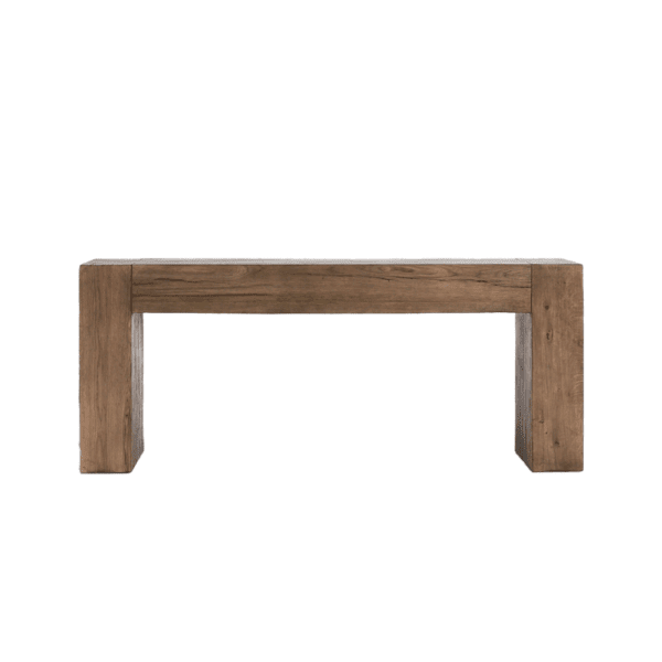 A minimalist console table crafted from solid Moski wood, showcasing clean lines and a bold block silhouette. Its natural grain and warm finish highlight the beauty of authentic craftsmanship, making it a timeless piece for both modern and classic interiors. Perfect for hallways, living rooms, or as a decorative display table.