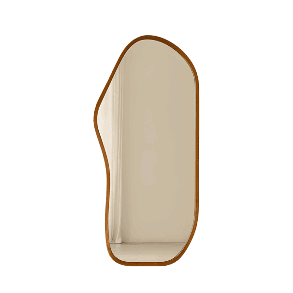 The Luna Mirror is inspired by natural forms and raw beauty. Its asymmetrical design and deep wood frame give it a grounded, earthy feel that