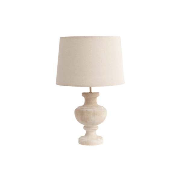 The beige color shade over the white distressed wood finish lamp base allows perfect light throughout the whole room and completes the French country feel.