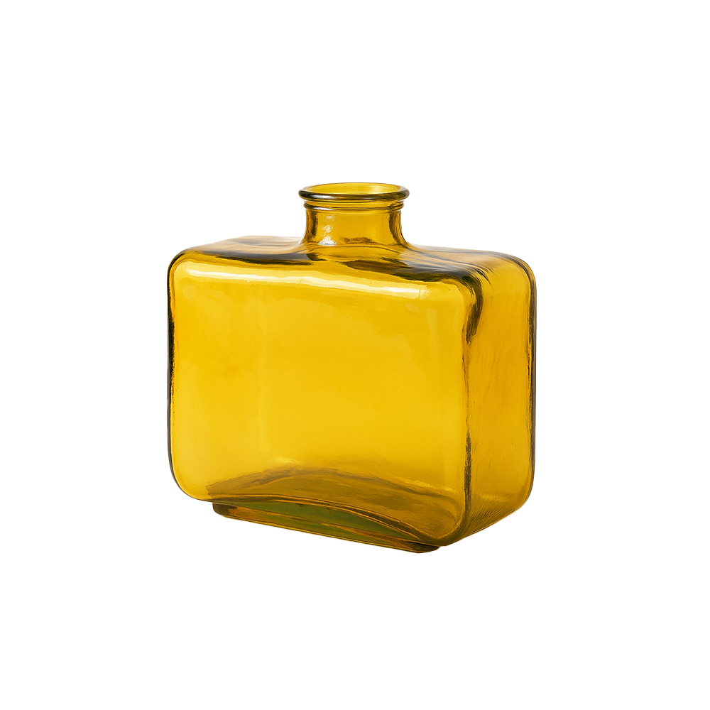 Hand-blown to perfection, the Solara Vase radiates warmth with its golden hue and softly rounded square