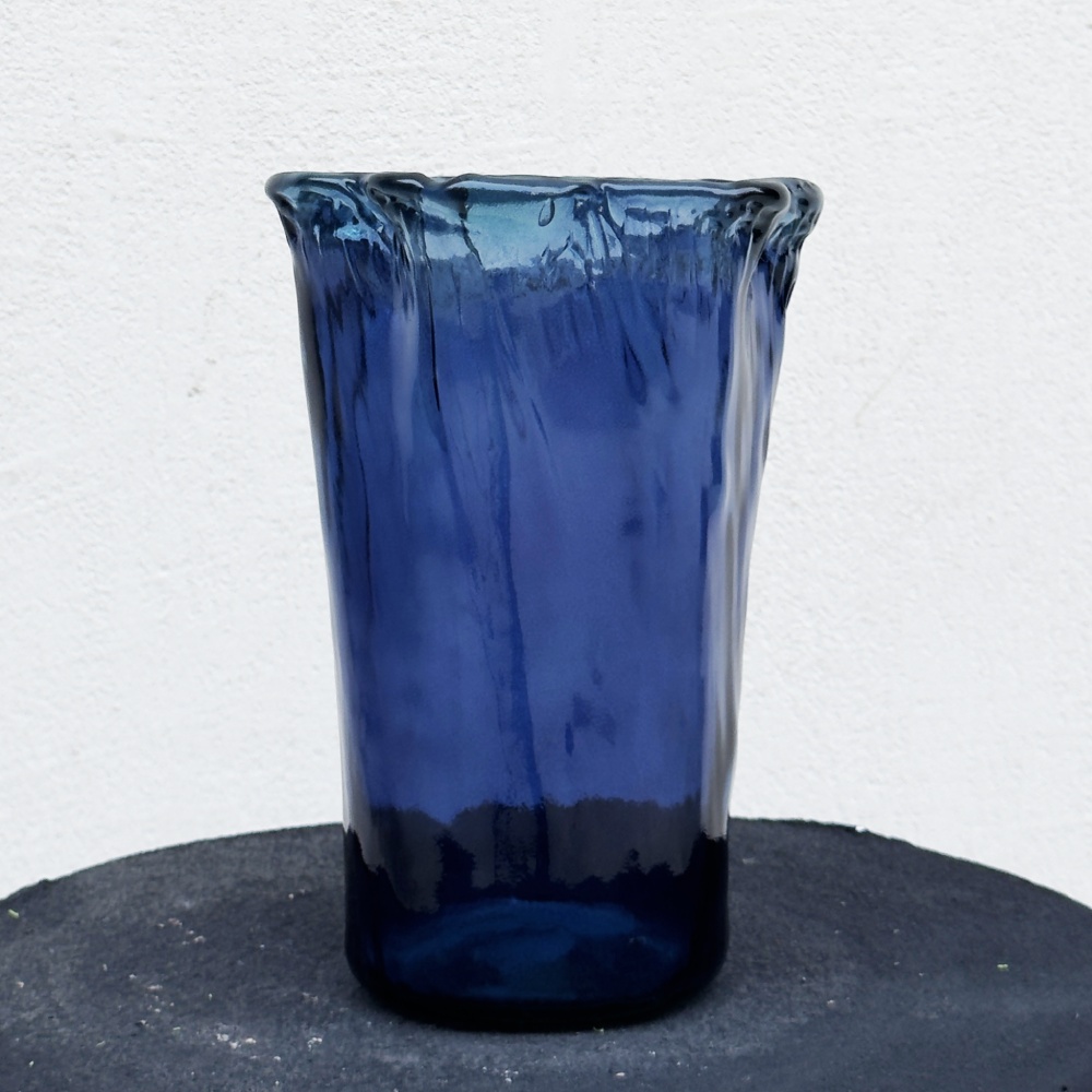 The Wave Vase captures the depth and mystery of the sea in hand-blown cobalt glass.