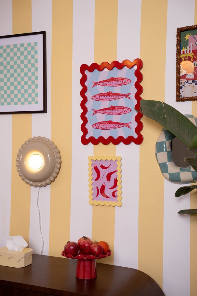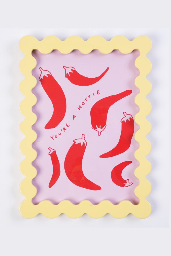 The Wiggle Frame in butter yellow brings a playful twist to your walls with its soft, wavy edges and
